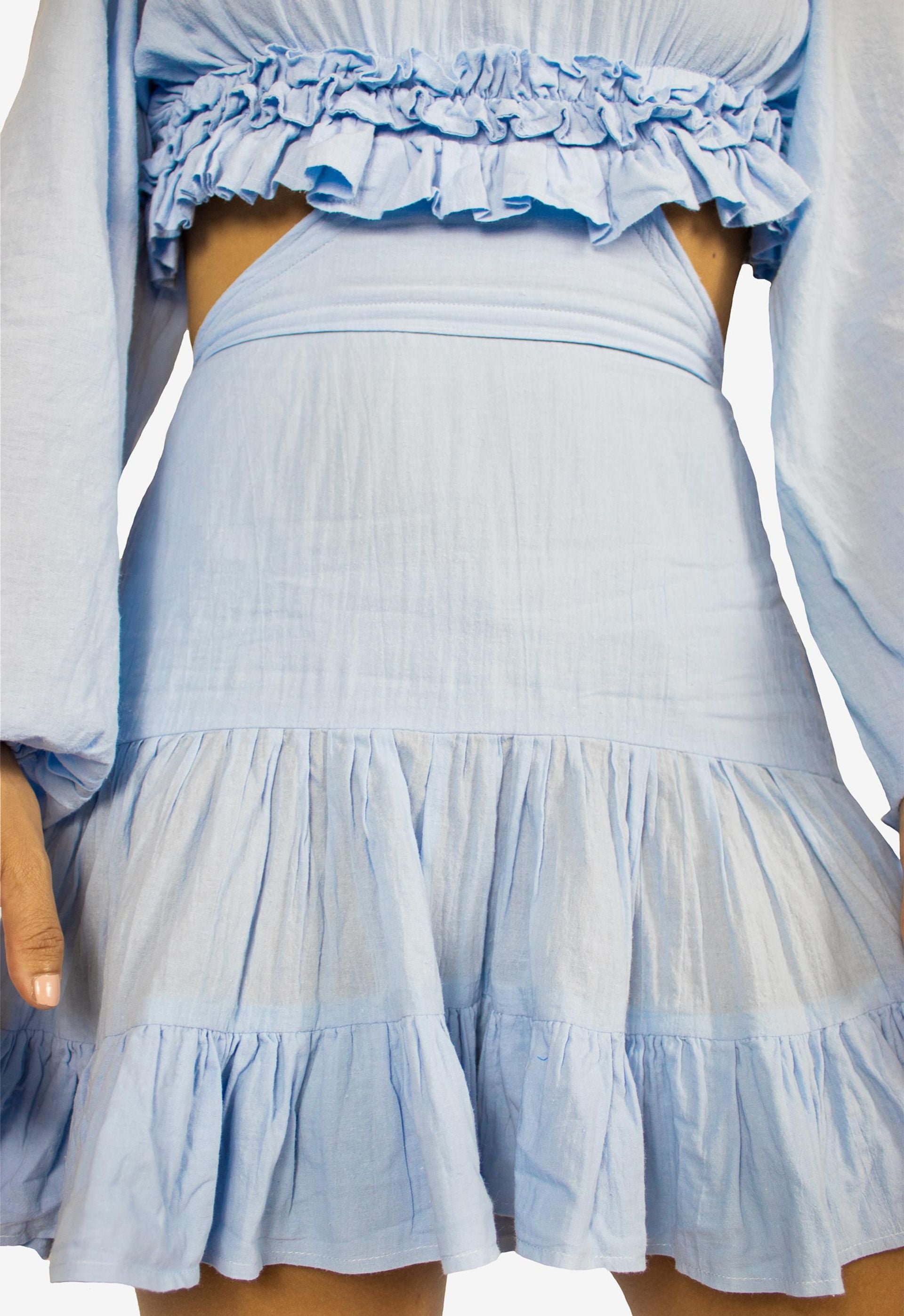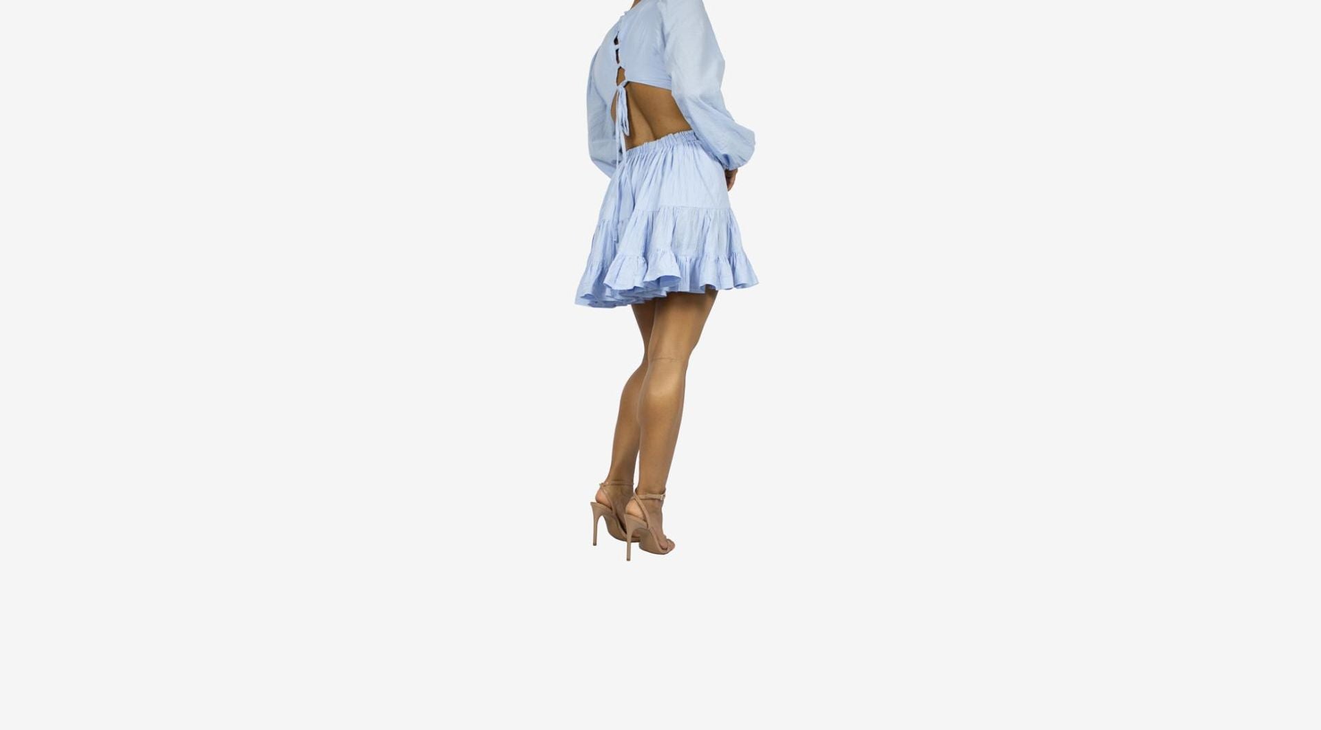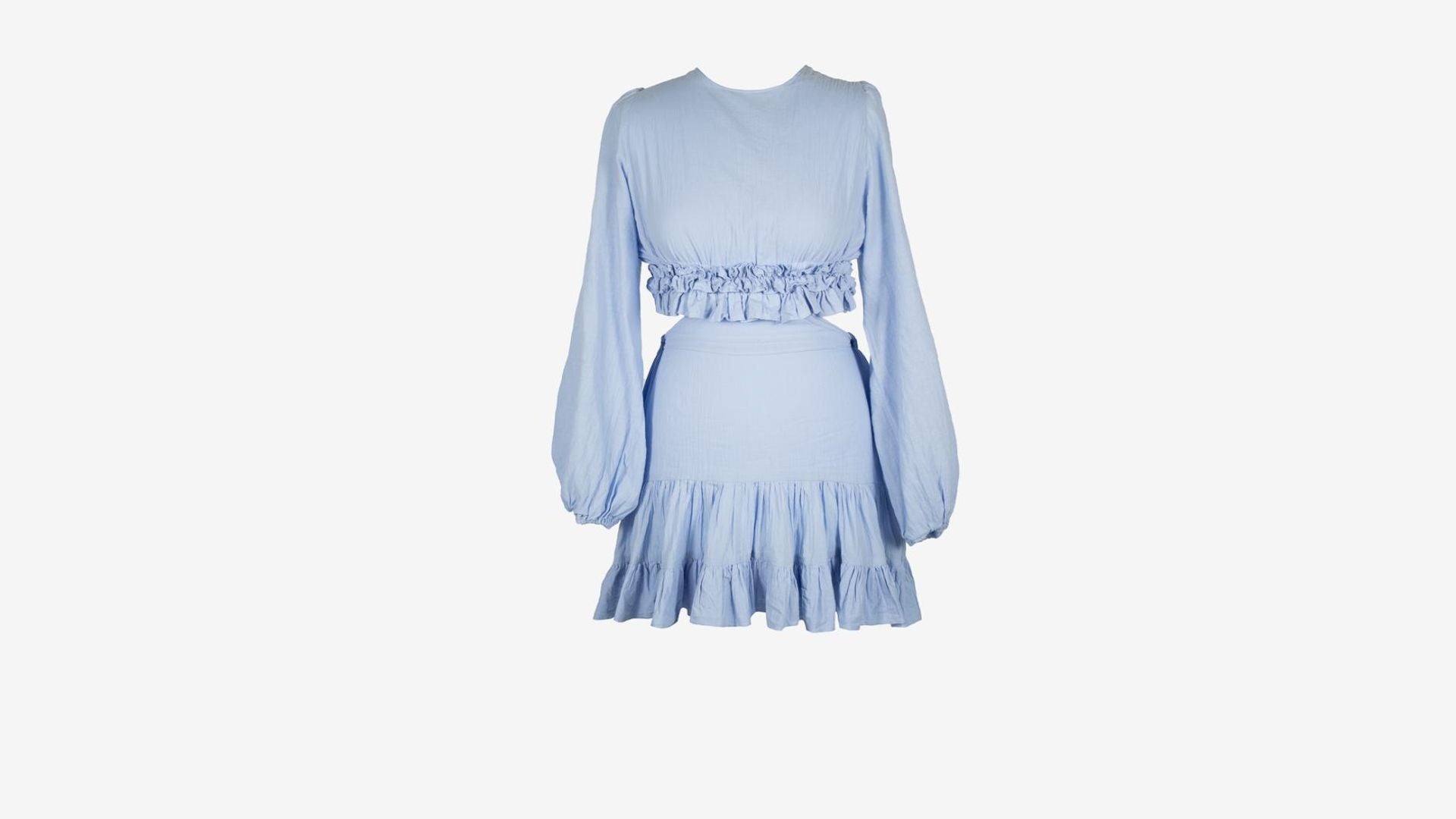 Svetlo modré šaty so šnurovaním vzadu. Vrch šiat je podšitý dvojitou vrstvou, takže na nosenie týchto šiat nie je potrebná podprsenka. Vďaka elastickému pásu sa šaty naozaj príjemne nosia.