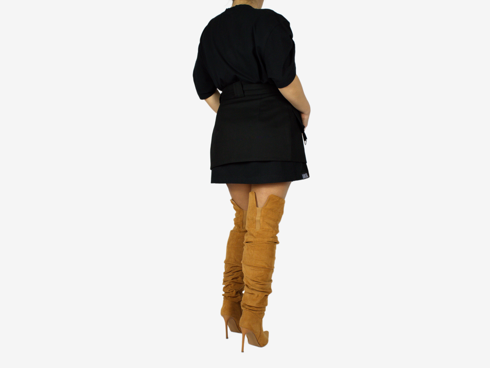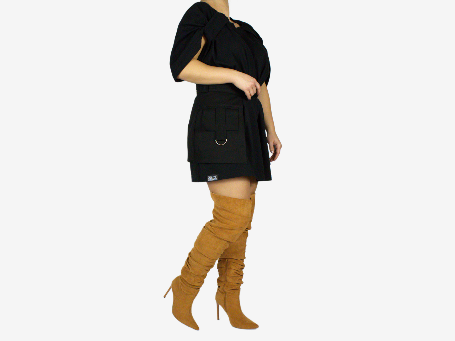 Tento skirtbelt je niečo medzi doplnkom a hlavným kúskom, ktorý okamžite pozdvihne každý outfit. Nastaviteľný pás ti umožní perfektné prispôsobenie, zatiaľ čo kovové detaily a vrecká pridávajú nečakaný nádych edgy štýlu. Zahoď nudné outfity a nechaj tento kúsok ukázať, že aj obyčajné oversized tričko dokážeš nastajlovať s precíznosťou a osobitým štýlom.