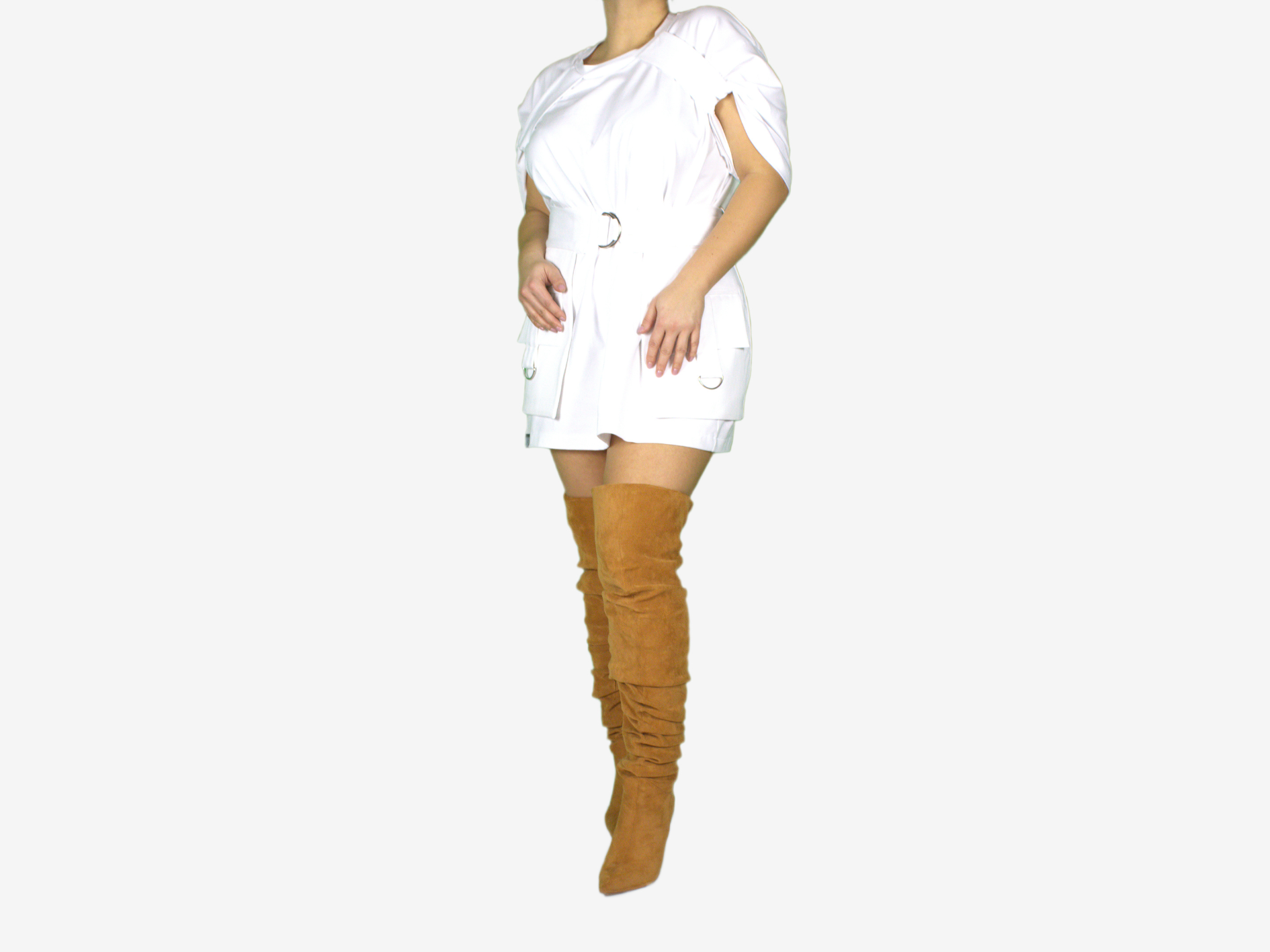 Tento skirtbelt je niečo medzi doplnkom a hlavným kúskom, ktorý okamžite pozdvihne každý outfit. Nastaviteľný pás ti umožní perfektné prispôsobenie, zatiaľ čo kovové detaily a vrecká pridávajú nečakaný nádych edgy štýlu. Zahoď nudné outfity a nechaj tento kúsok ukázať, že aj obyčajné oversized tričko dokážeš nastajlovať s precíznosťou a osobitým štýlom.